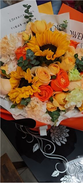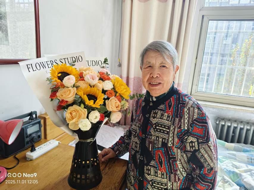 爱上海后花园 💐花束很漂亮,花语很贴切,老人非常喜欢。