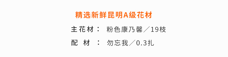 爱上海后花园高档礼盒装鲜花: 粉色康乃馨19枝,勿忘我3枝